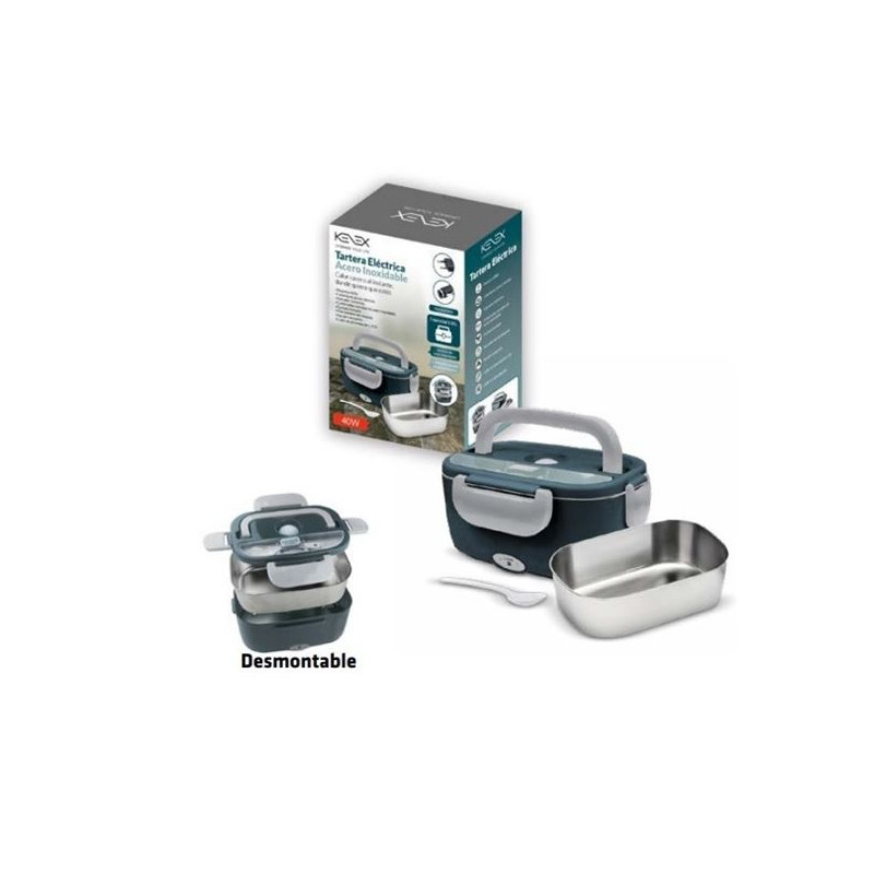Fiambrera eléctrica de doble conexión - Capacidad 1,5 litros. Recipiente extraible de acero inoxidable - Recipente extraible de plástico. 2 Cables de carga: oficina / casa (220V) y coche / camión (12V - 24V) - Bolsa de transporte. Incluye cubiertos de acero inoxidable - Sistema de vacío - Resistente a altas temperaturas. Tiempo de calentado de...