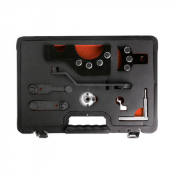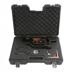 • Kit de calado para motores del grupo VAG. • Fabricado para el bloqueo de árbol de levas, del cigüeñal y la bomba diésel mientras se trabaja en la correa de distribución. • Incluye bloqueo de engranaje del cigüeñal y pasadores de bloqueo de arbol de levas. • Fabricado en acero. • Incluye maletín plástico de transporte