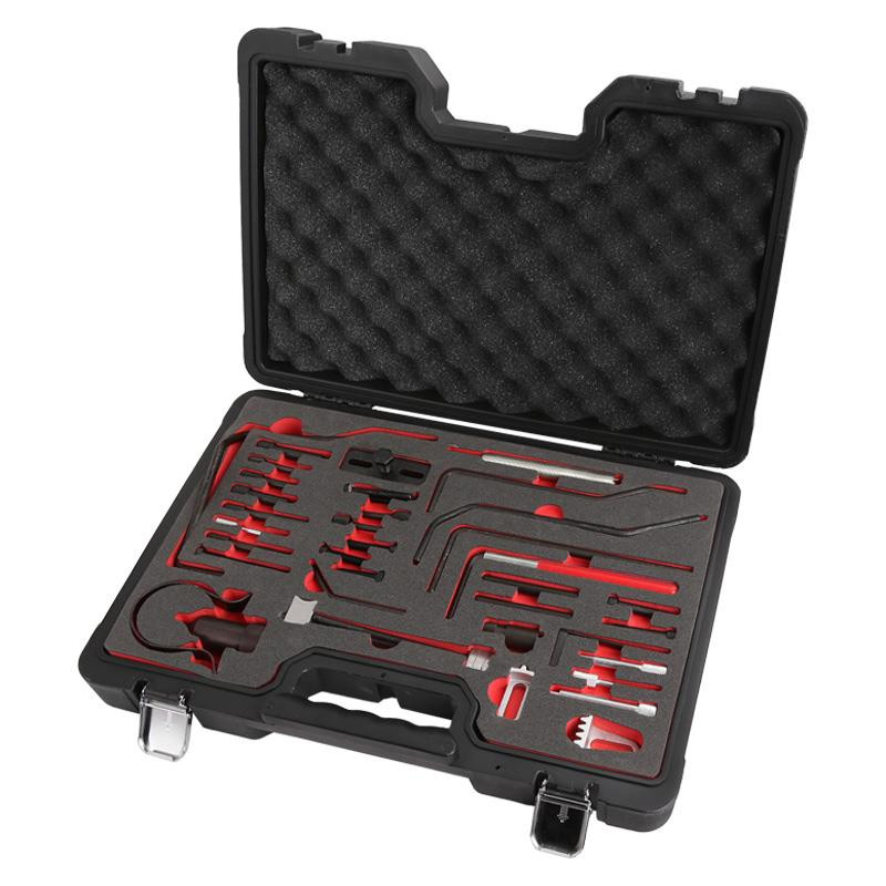 • Fabricado para la correcta reparación y sustitución de todos los elementos del sistema de distribución, desde la correa a los piñones del árbol de levas y el cigüeñal.