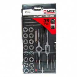 7 pcs. cojinetes: M3x0.5-0.6, M4x0.7-0.75, M5x0.8-0.9, M6x0.75-1.0, M7x0.75-1.0, M8x1.0-1.25, M10x1.25-1.5, M12x1.5-1.75 y 1/8NPT-27.