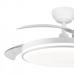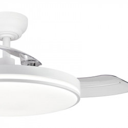 • Este ventilador de techo combina funcionalidad y estilo, sus aspas retráctiles permiten ocultarlas fácilmente, una ventaja frente a otros ventiladores tradicionales de techo. • Integra una lámpara plafón capaz de iluminar ampliamente la estancia. • Luz ajustable 2.700K - 4.000K - 6.500 K (luz cálida-neutra-fría). • Seis velocidades. • Temporizador. •...