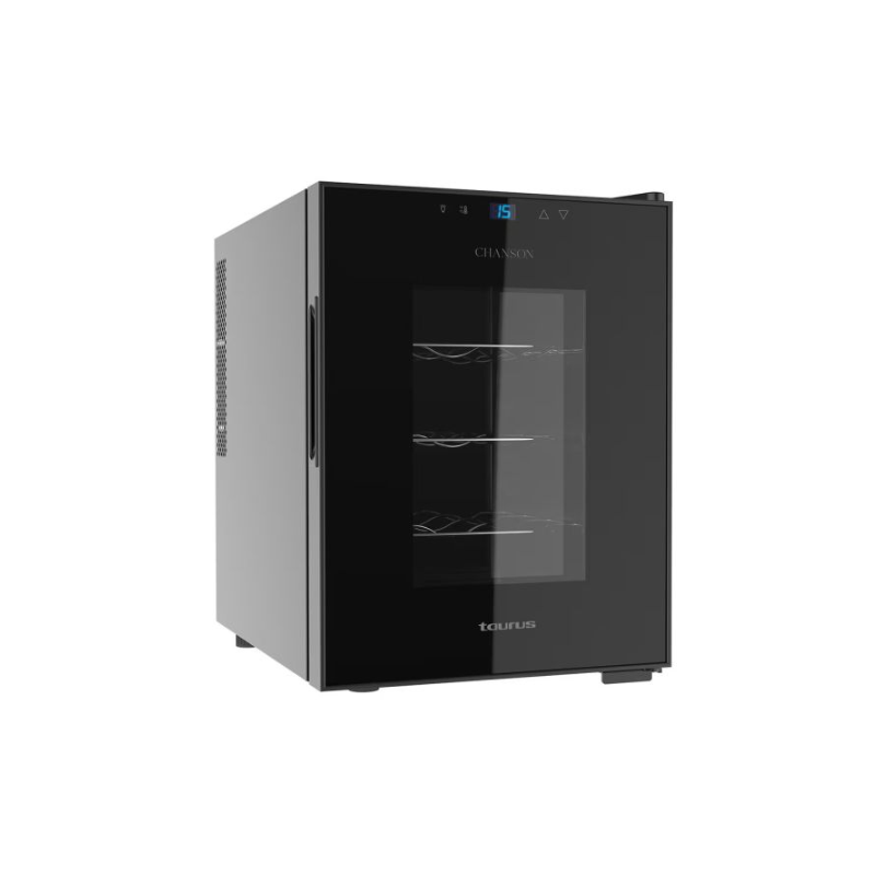 VINOTECA 12 BOTELLAS - TAURUS CHANSON 12, TEMPERATURA 11 A 18°C, CLASE G, 26 DB, ALTO 47, ANCHO 34,5, FONDO 49 CM, COLOR NEGRO.