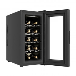 Vinoteca con espacio para 12 botellas, pantalla LED, control tácil, interruptor encendido/apagado, rango de temperatura de 11 a 18 ?C, 47,7 x 34,5 x 51 cm, negra, clase F Altura (mm): 477 Ancho (mm): 345 Capacidad (botellas): 12 Eficiencia energética: _F Fondo (mm): 510 Integrable: No Zonas de temperatura: 1