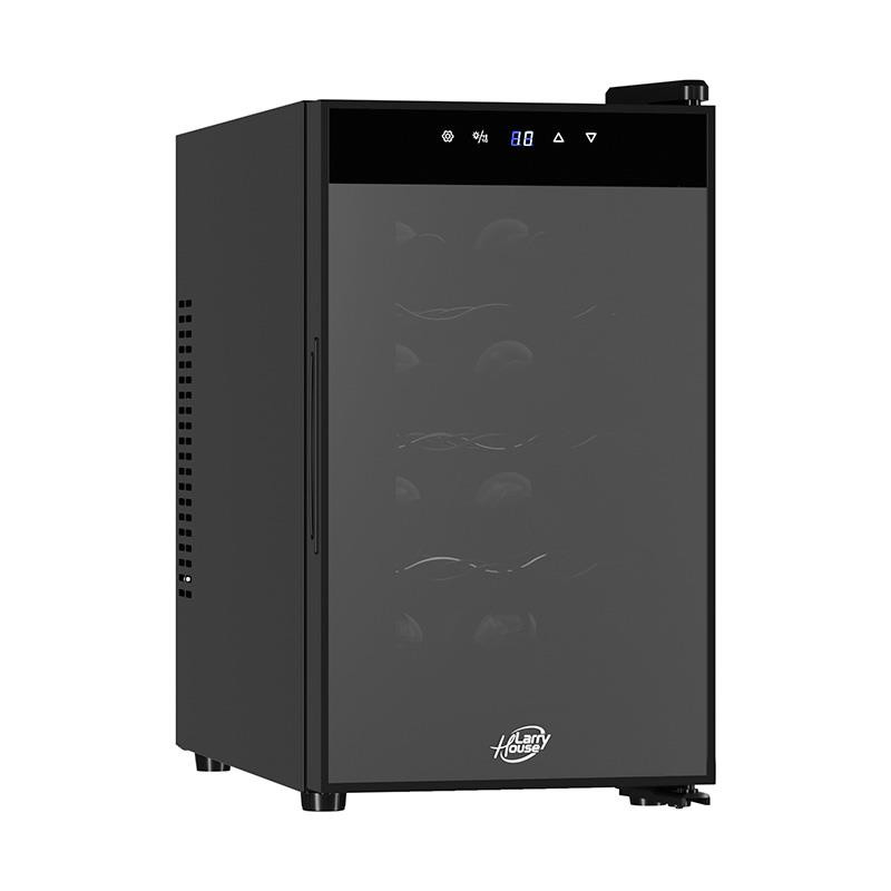 Vinoteca con espacio para 12 botellas, pantalla LED, control tácil, interruptor encendido/apagado, rango de temperatura de 11 a 18 ?C, 47,7 x 34,5 x 51 cm, negra, clase F Altura (mm): 477 Ancho (mm): 345 Capacidad (botellas): 12 Eficiencia energética: _F Fondo (mm): 510 Integrable: No Zonas de temperatura: 1