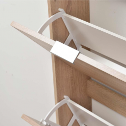www.mipuntomovil.com Zapatero con 3 puertas abatibles. Diseño sencillo y funcional, ideal para aquellas estancias que no disponen de mucho espacio. Permite almacenar hasta 18 pares de zapatos. Limpieza fácil.
