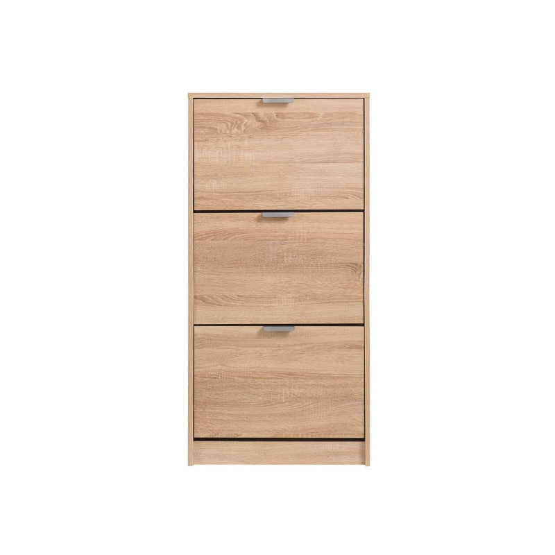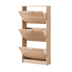 www.mipuntomovil.com Zapatero con 3 puertas abatibles. Diseño sencillo y funcional, ideal para aquellas estancias que no disponen de mucho espacio. Permite almacenar hasta 18 pares de zapatos. Limpieza fácil.